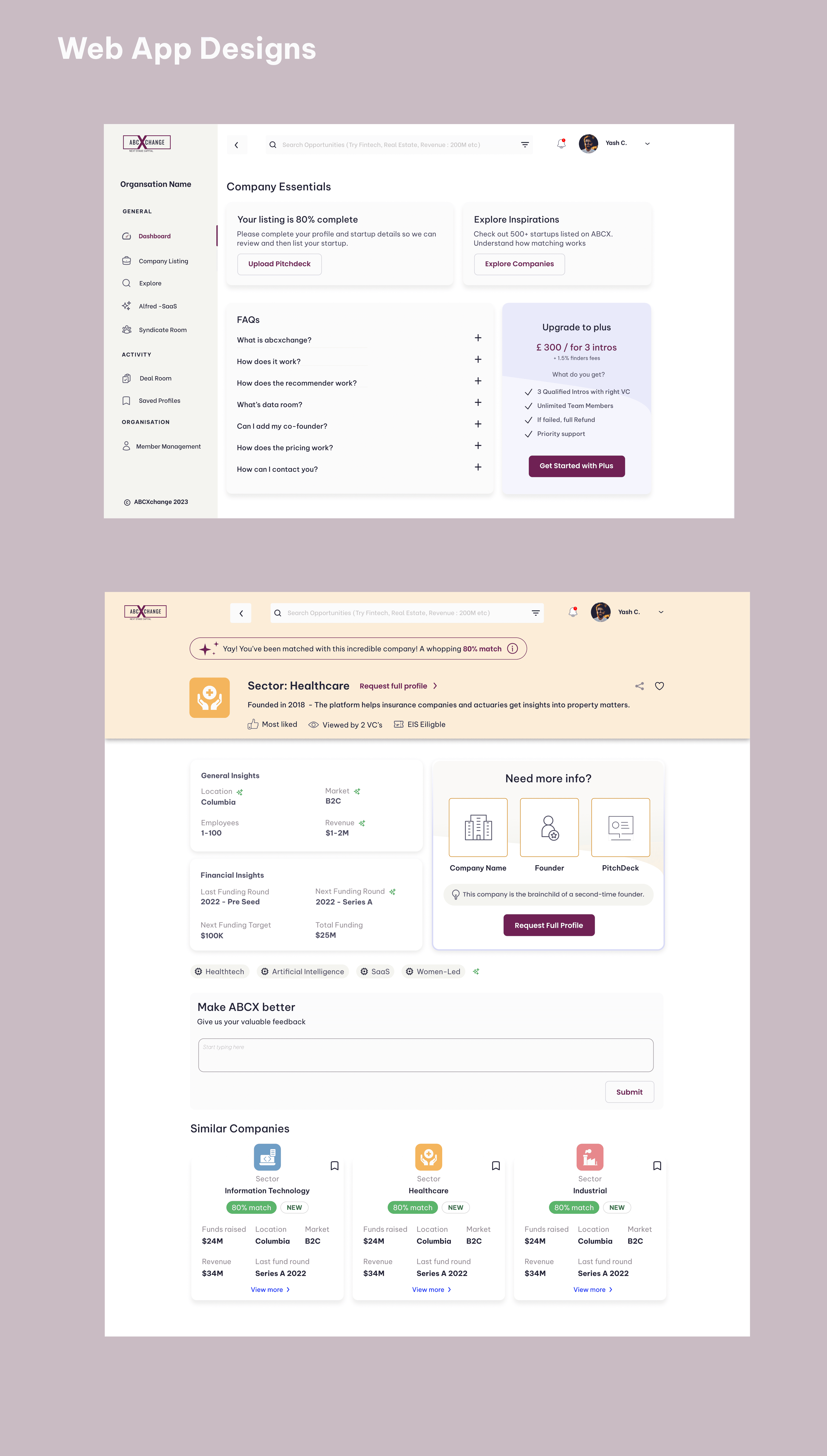 Redesigned company cards to display concise, targeted information that highlights key aspects of each company, making it easier for VCs to quickly assess and decide to explore further.
